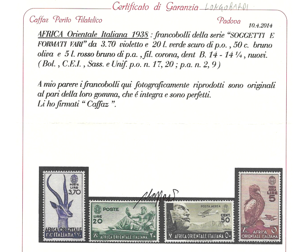 ordinaria 1/20 + PA 1/13 + Ex1/2 - Certificato di garanzia E. CAFFAZ